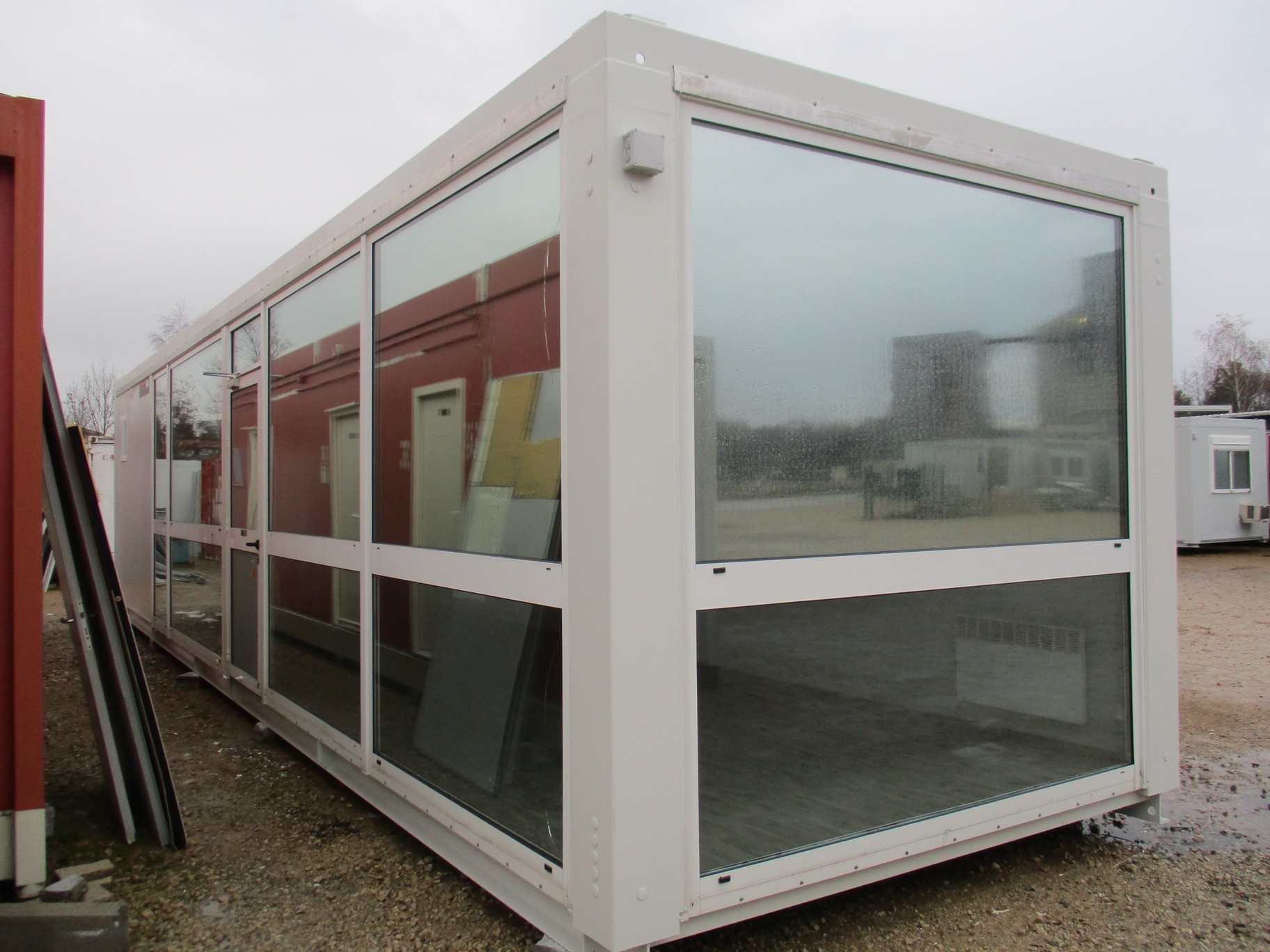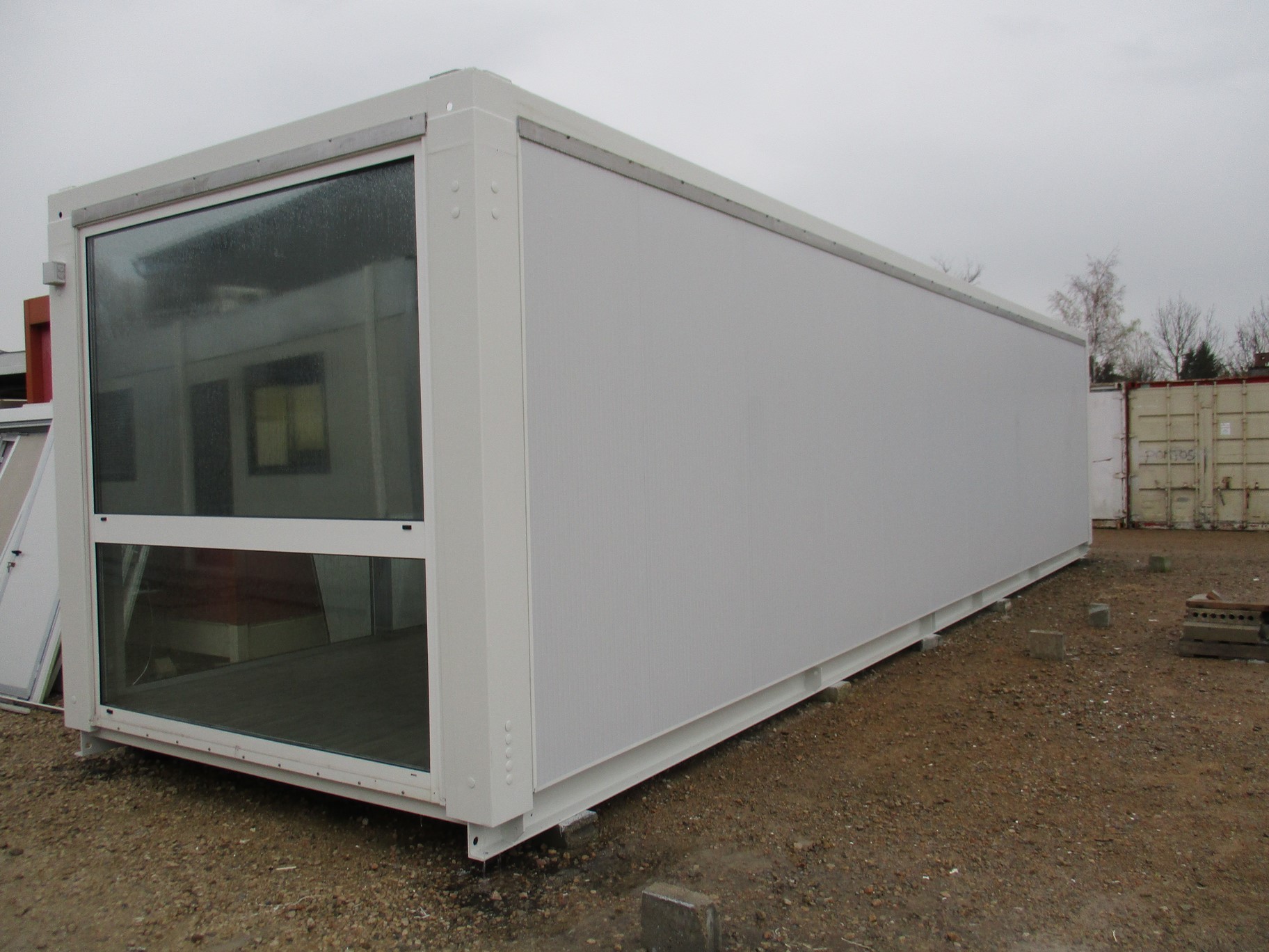 Notre client souhaitait créer un hall d’exposition de carrelage et a choisi une bulle de vente d’occasion qui a été entièrement reconditionnée  avec un nouveau cloisonnement, électricité remise à neuf, revêtement de sol neuf …